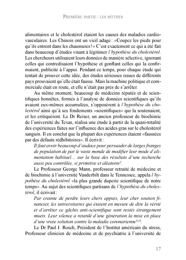 Si vous vous êtes laissé convaincre que vous pouvez prévenir la mort par maladie cardiovasculaire en modifiant votre taux sanguin de cholestérol, soit par le biais de l’alimentation, soit par celui des médicaments, vous suivez un régime qui ne repose sur aucune base concrète. C’est plutôt le signe qu’en tant que consommateur, vous avez été dupé par des intérêts commerciaux et par des groupes censés représenter la santé qui sont plus intéressés par votre argent que par votre vie.