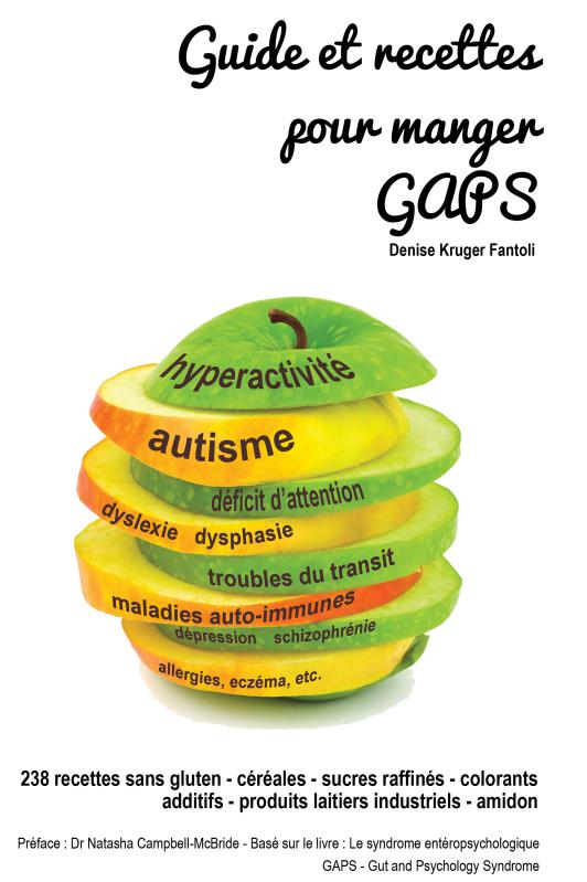 Sur cette page, vous avez trouvé les recettes de base essentielles pour suivre le régime GAPS. Toutefois, si vous souhaitez plus de recettes (illustrées et classées par étape d’introduction) ou si vous avez besoin de ressources supplémentaires et de conseils pratiques (mode d’emploi du régime GAPS, tableau récapitulatif du régime avec synthèse des aliments ajoutés à chaque étape, menu type et plan de menu hebdomadaire, cahier d’observation, liste de l’équipement idéal, liste des compléments alimentaires recommandés, liste des principales réactions d’Herxheimer, test de sensibilité, programme d’introduction des produits laitiers en 6 phases, etc.), nous conseillons cet ouvrage: