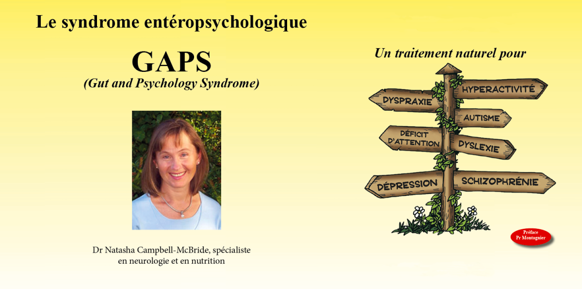 Le profil de toxicité de chaque enfant ou adulte peut être très différent d’un sujet à l’autre. Mais le dénominateur commun demeure la dysbiose intestinale. La toxicité de la masse microbienne déséquilibrée de ces patients constitue une passerelle entre les intestins et le cerveau. C’est la raison pour laquelle ces symptômes sont regroupés au sein d’un seul et même syndrome, le syndrome entéropsychologique (ou GAPS, Gut and Psychology Syndrome) . Les patients et les adultes souffrant de ce syndrome peuvent présenter des symptômes d’autisme, d’hyperactivité avec déficit d’attention, de déficit d’attention, de troubles obsessionnels compulsifs, de dyslexie, de dyspraxie, de schizophrénie, de dépression, de troubles du sommeil, d’allergies, d’asthme et d’eczéma dans toutes les combinaisons possibles. Ce sont là des patients qui passent à travers les mailles de nos connaissances médicales. Tout enfant ou adulte présentant des difficultés d’apprentissage ou des problèmes neurologiques ou psychiatriques devrait faire l’objet d’un examen approfondi de sa flore intestinale. Le rétablissement d’une flore intestinale équilibrée et le traitement du système digestif du patient doivent être effectués en première intention avant tout traitement médicamenteux.